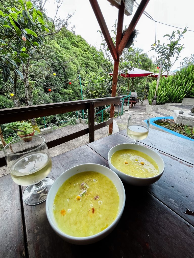 Du erhältst ein 4-Gänge-Überraschungsmenü. Du weißt also nicht, was du bekommen wirst. Wir bekamen zuerst einen leckeren Salat mit hausgemachtem Pesto und essbaren Blüten, dann eine Zwiebelsuppe und als Hauptgericht einen hausgemachten vegetarischen Burger mit ein paar Kartoffeln, Kichererbsen, Karotten usw. Als Nachtisch gab es Banane mit einer Art Aufstrich aus Süßkartoffeln, Kokosöl, Karotte und Zimt, haha. Klingt wahrscheinlich überhaupt nicht lecker, aber es war sehr lecker und süß. 😜 Dieses Restaurant ist auf jeden Fall zu empfehlen, aber es muss dein „Stück Fencheltee“ sein, wie es jemand in den Bewertungen beschrieben hat. 😜 Für dich ist es nicht geeignet, wenn du gerne Fleisch isst oder das für dich etwas zu „hippiehaft“ ist.